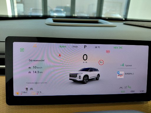 - Průhledový displej na čelním skle (HUD - Head Up Display)